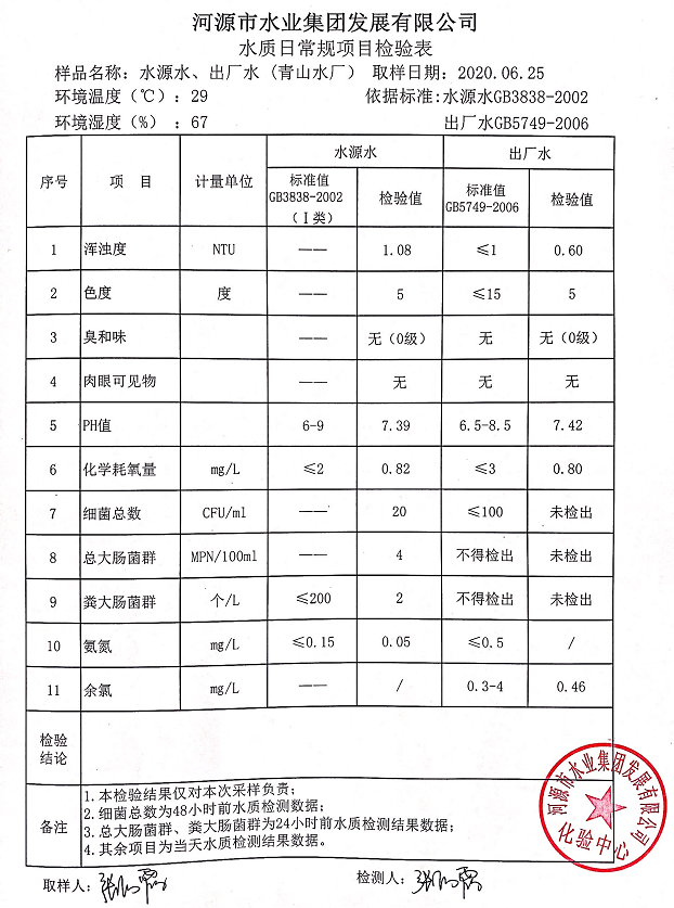 2020年6月25日水質檢驗報告