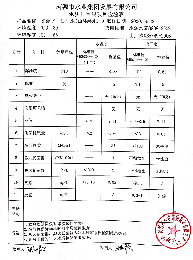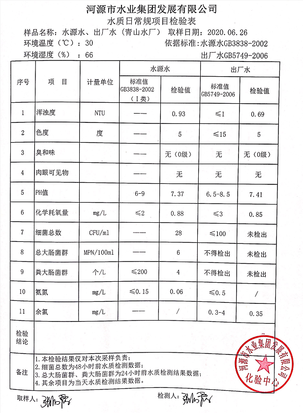 2020年6月26日水質檢驗報告