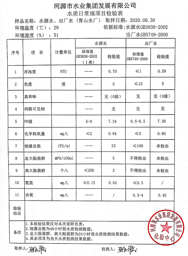 2020年6月30日水質檢驗報告