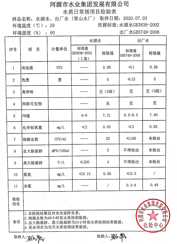 2020年7月3日水質(zhì)檢驗(yàn)報(bào)告