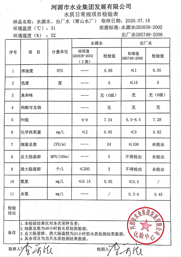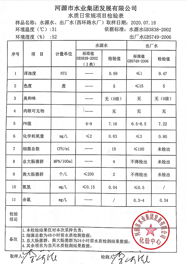 2020年7月18日水質(zhì)檢驗(yàn)報(bào)告