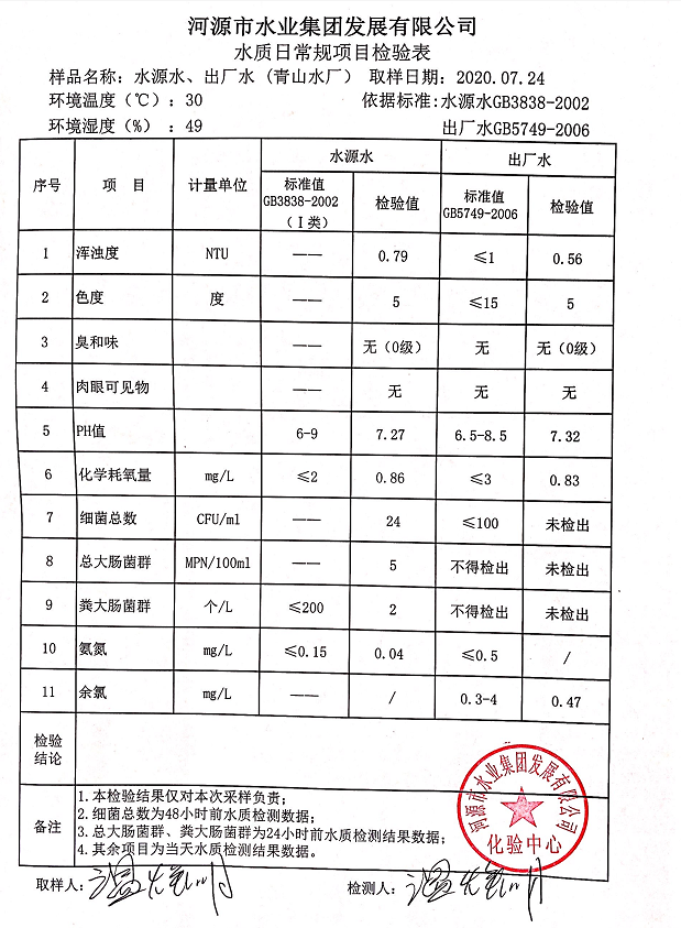 2020年7月24日水質檢驗報告