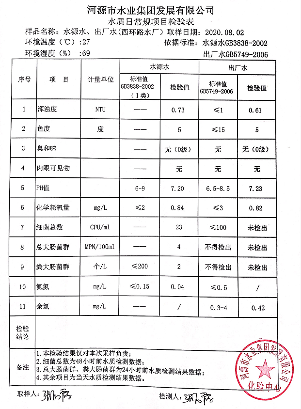 2020年8月2日水質檢驗報告
