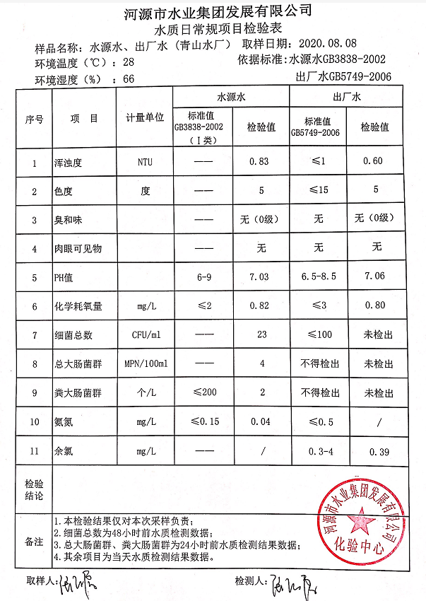 2020年8月8日水質檢驗報告