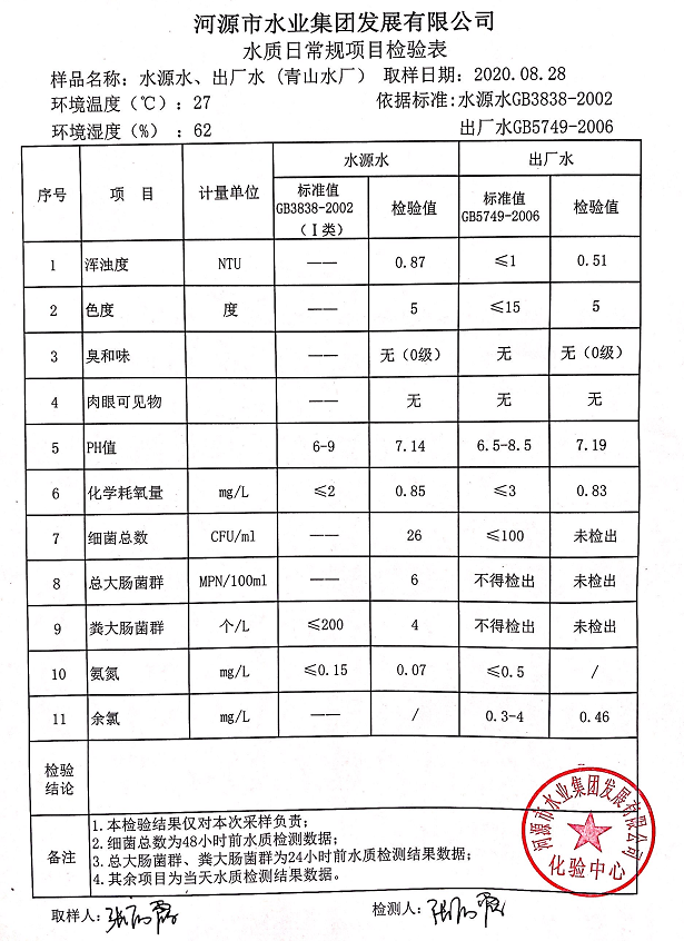 2020年8月28日水質檢驗報告