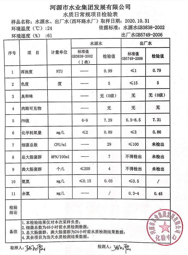 2020年10月31日水質檢驗報告