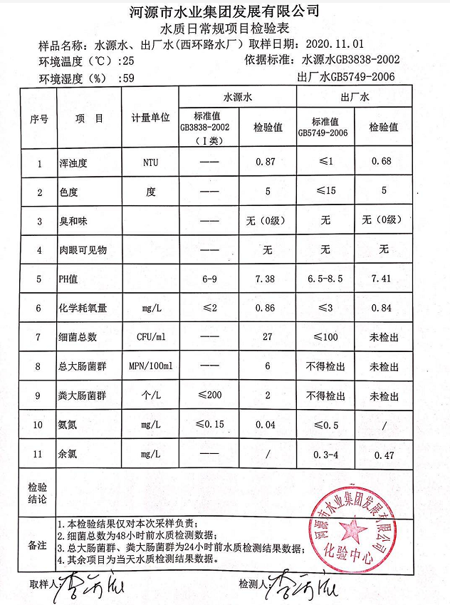 2020年11月1日水質檢驗報告
