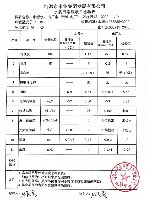 2020年11月14日水質檢驗報告