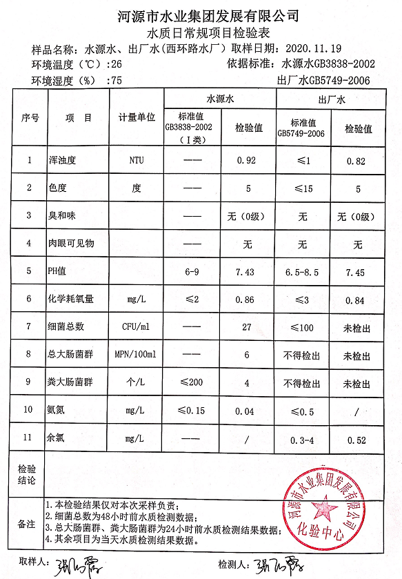 2020年11月19日水質檢驗報告