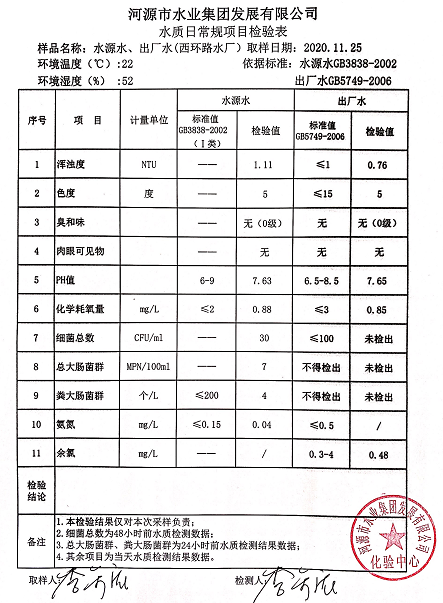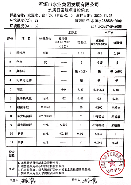 2020年11月25日水質檢驗報告