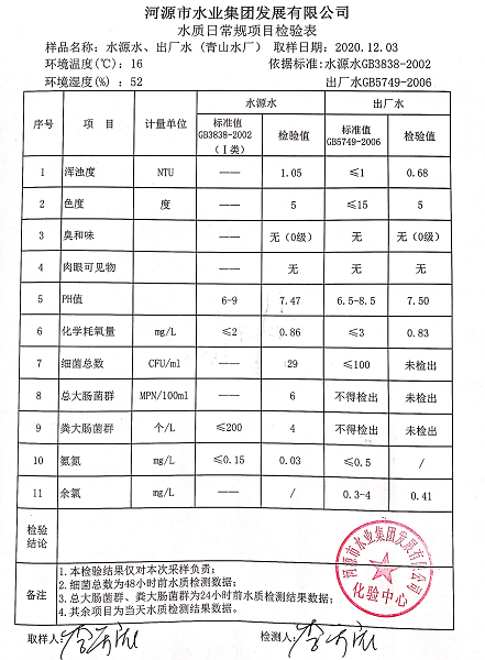 2020年12月3日水質檢驗報告