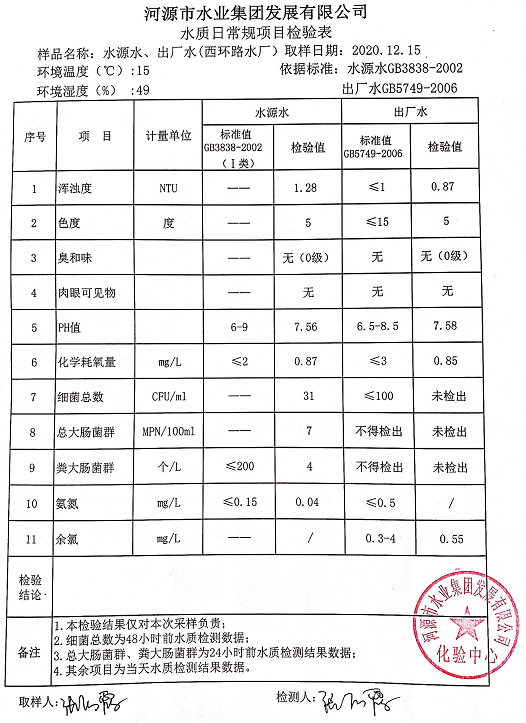 2020年12月15日水質(zhì)檢驗(yàn)報(bào)告