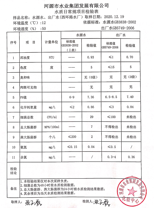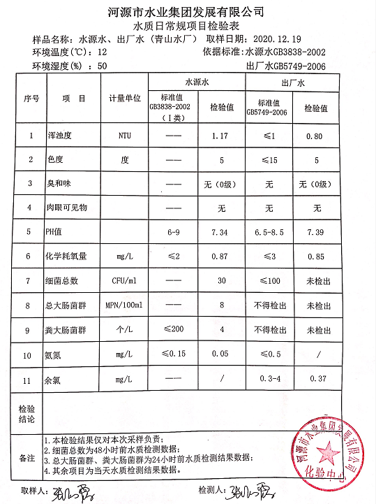 2020年12月19日水質(zhì)檢驗報告