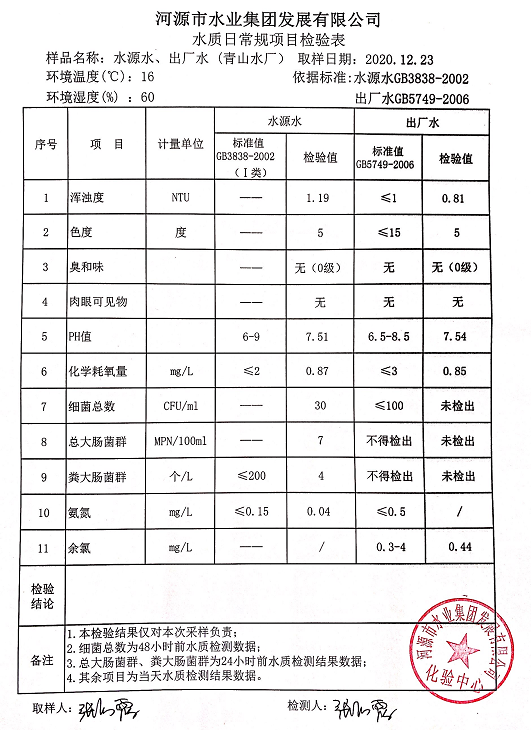 2020年12月23日水質檢驗報告