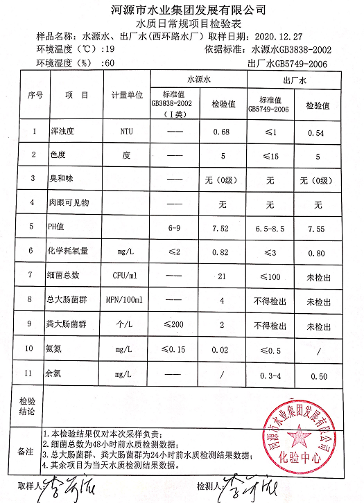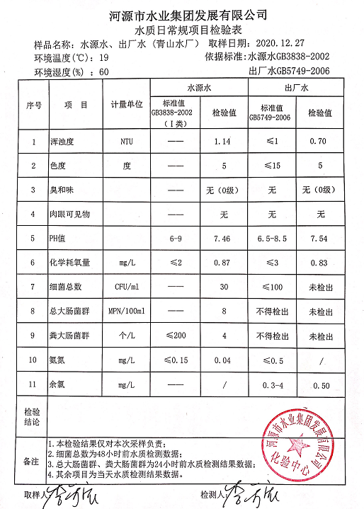 2020年12月27日水質檢驗報告