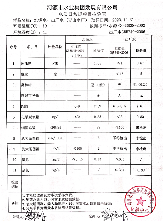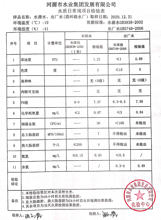 2020年12月31日水質檢驗報告