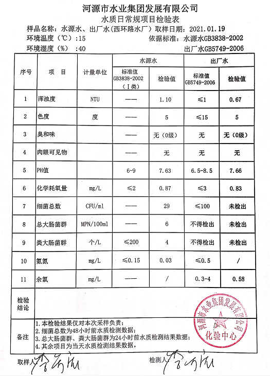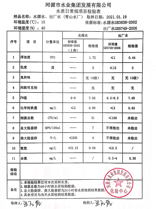 2021年1月19日水質檢驗報告