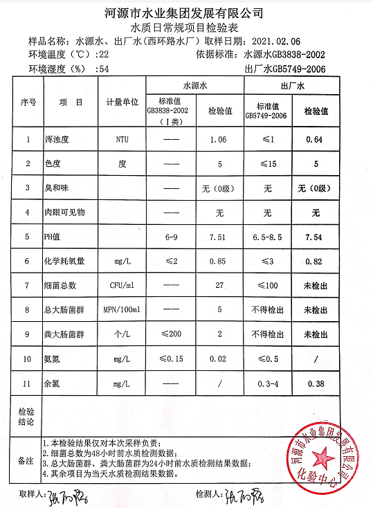 2021年2月6日水質檢驗報告