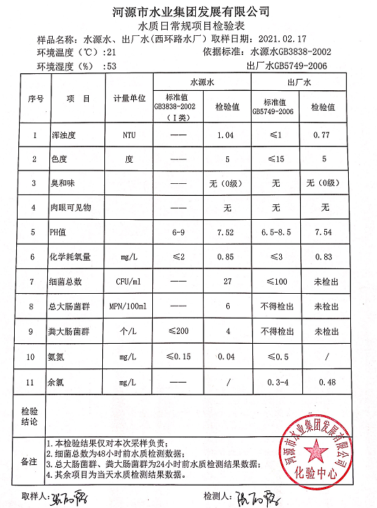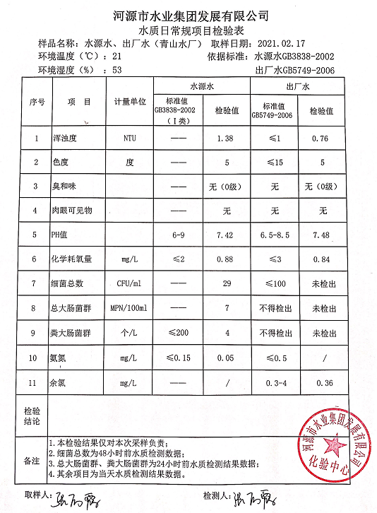 2021年2月17日水質檢驗報告