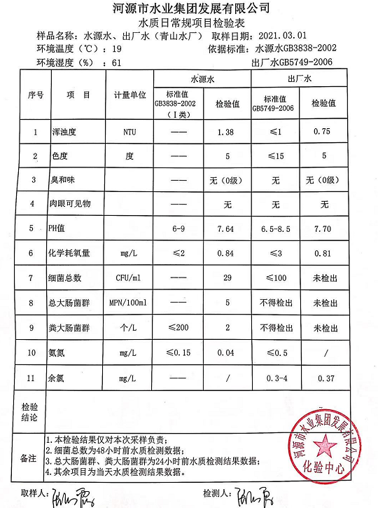 2021年3月1日水質檢驗報告