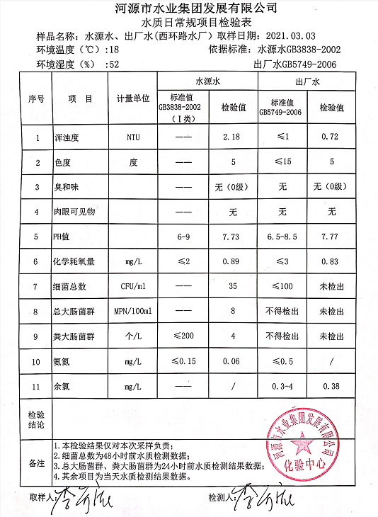 2021年3月3日水質(zhì)檢驗(yàn)報(bào)告