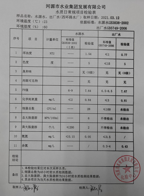 2021年3月12日水質(zhì)檢驗(yàn)報(bào)告