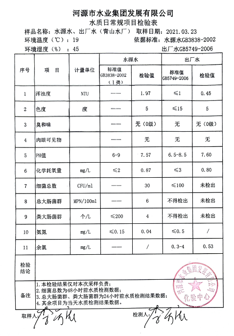 2021年3月23日水質(zhì)檢驗(yàn)報(bào)告