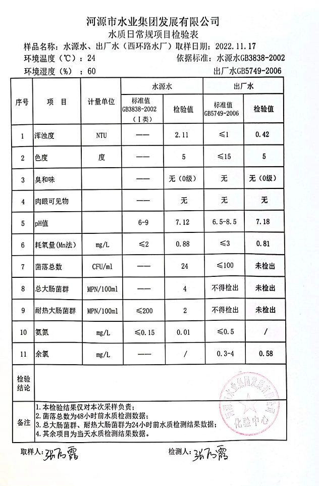 2022年11月17日水質檢驗報告
