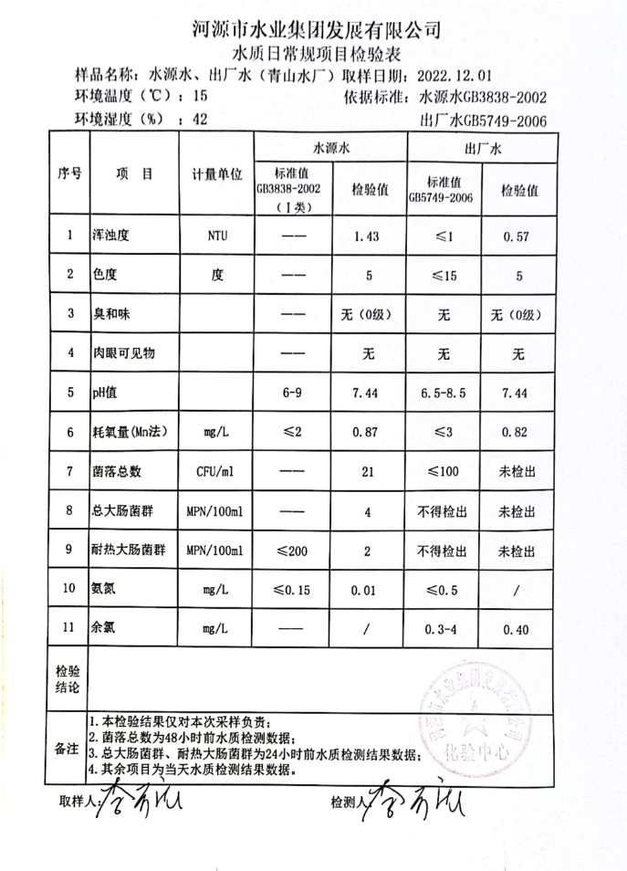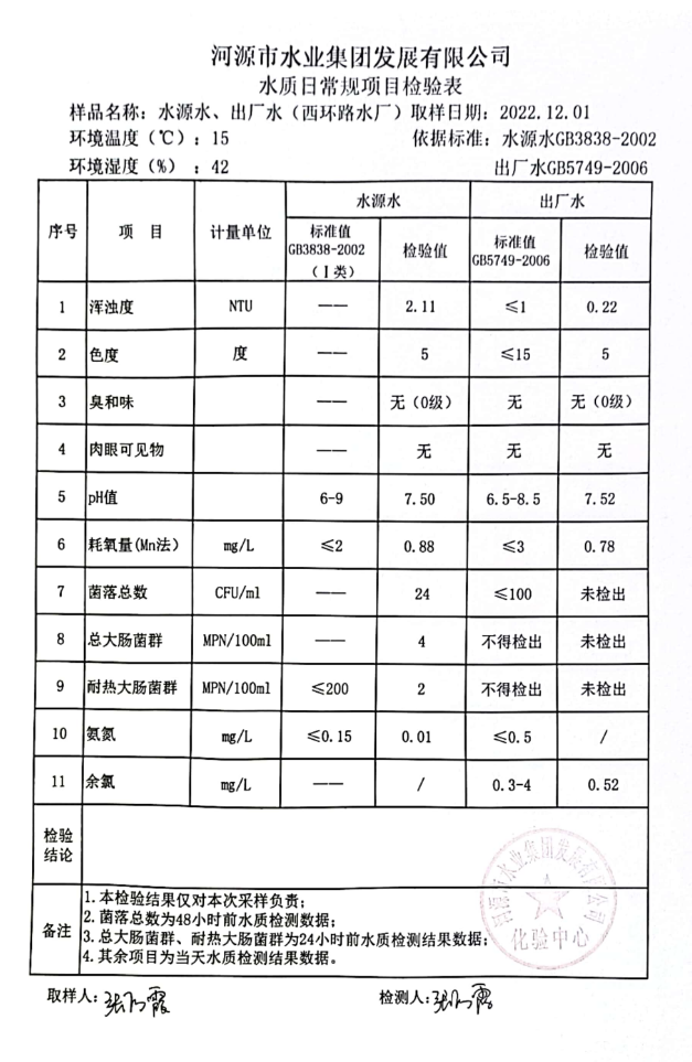 2022年12月1日水質檢驗報告