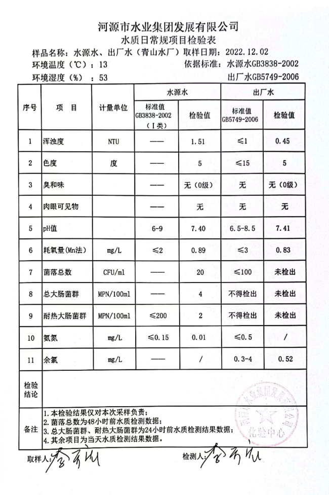 2022年12月2日水質檢驗報告