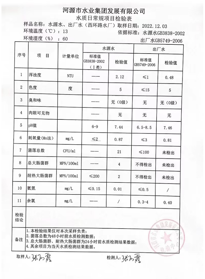 2022年12月3日水質檢驗報告