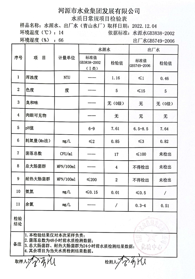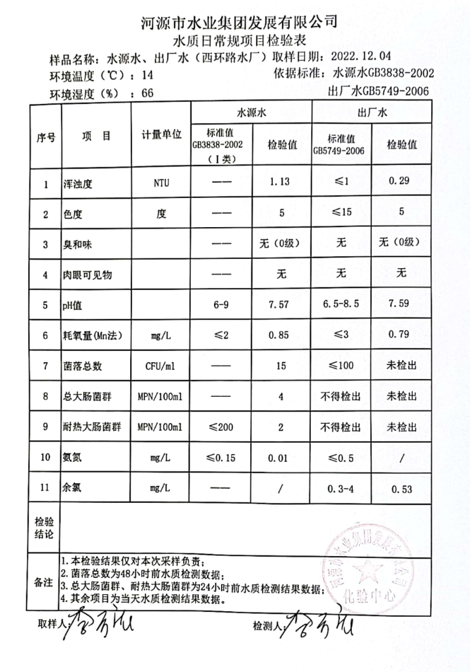 2022年12月4日水質檢驗報告