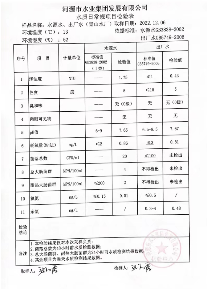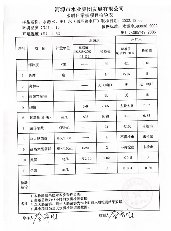 2022年12月6日水質檢驗報告