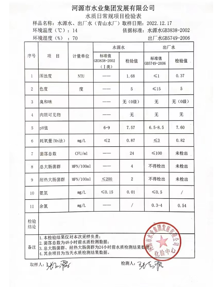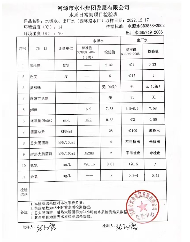 2022年12月17日水質檢驗報告