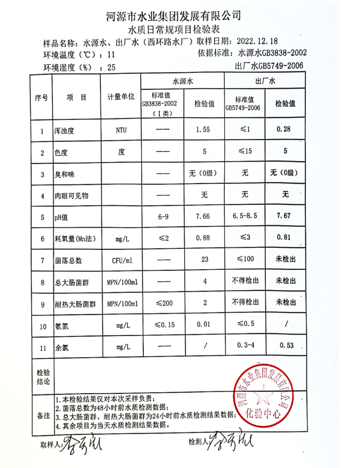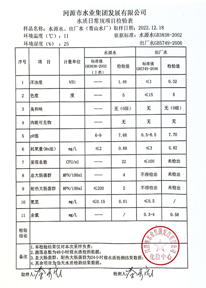 2022年12月18日水質檢驗報告