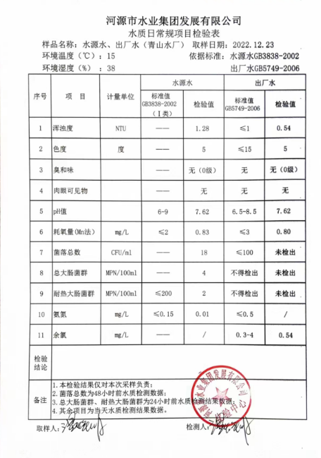 2022年12月23日水質(zhì)檢驗(yàn)報(bào)告
