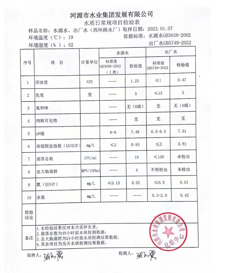 2023年1月7日水質檢驗報告