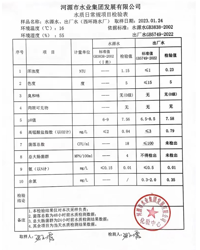 2023年1月24日水質檢驗報告