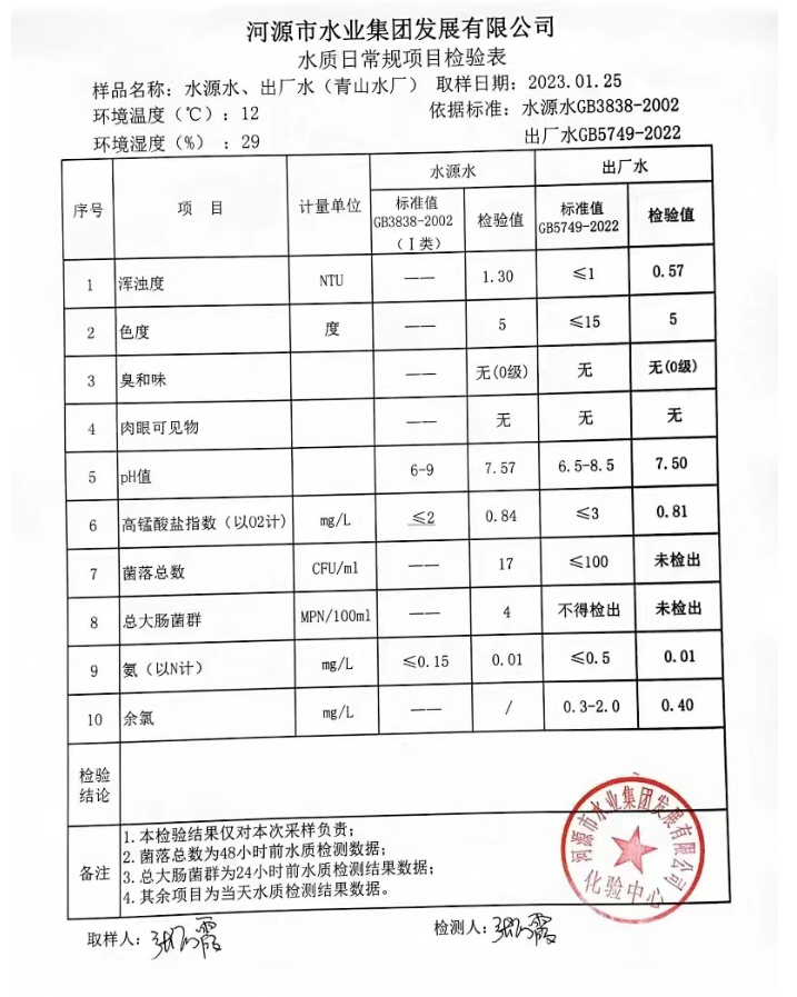 2023年1月25日水質檢驗報告