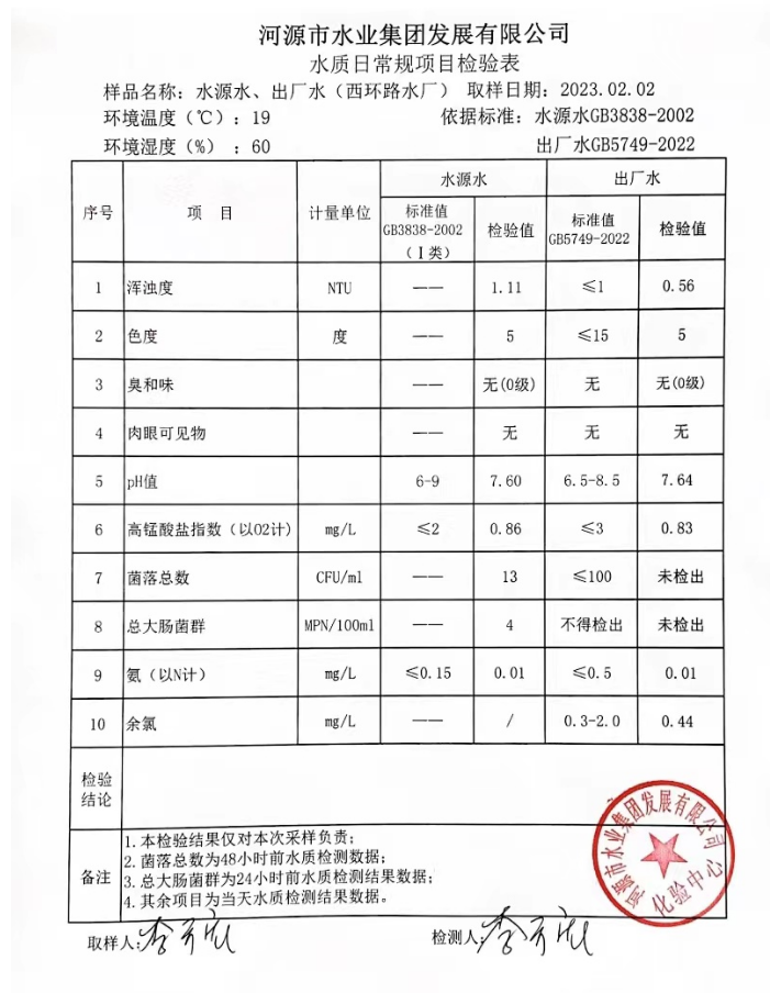 2023年2月2日水質檢驗報告
