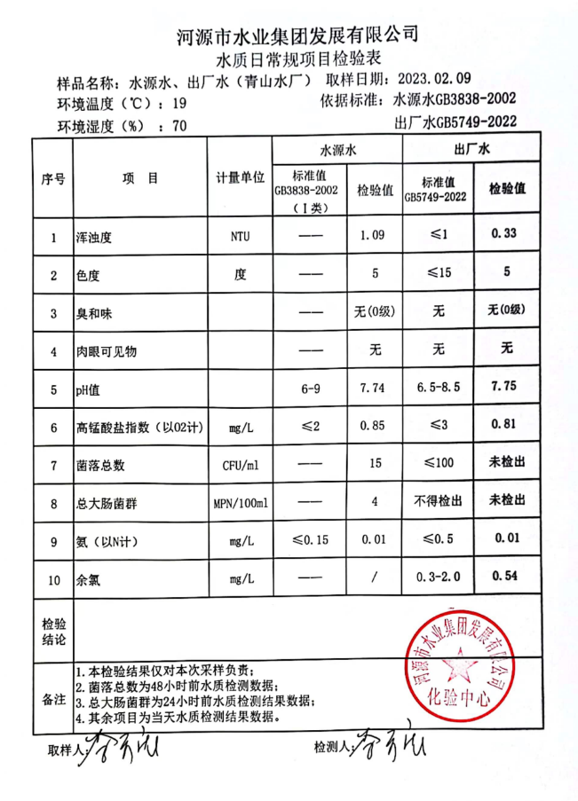 2023年2月9日水質(zhì)檢驗(yàn)報(bào)告