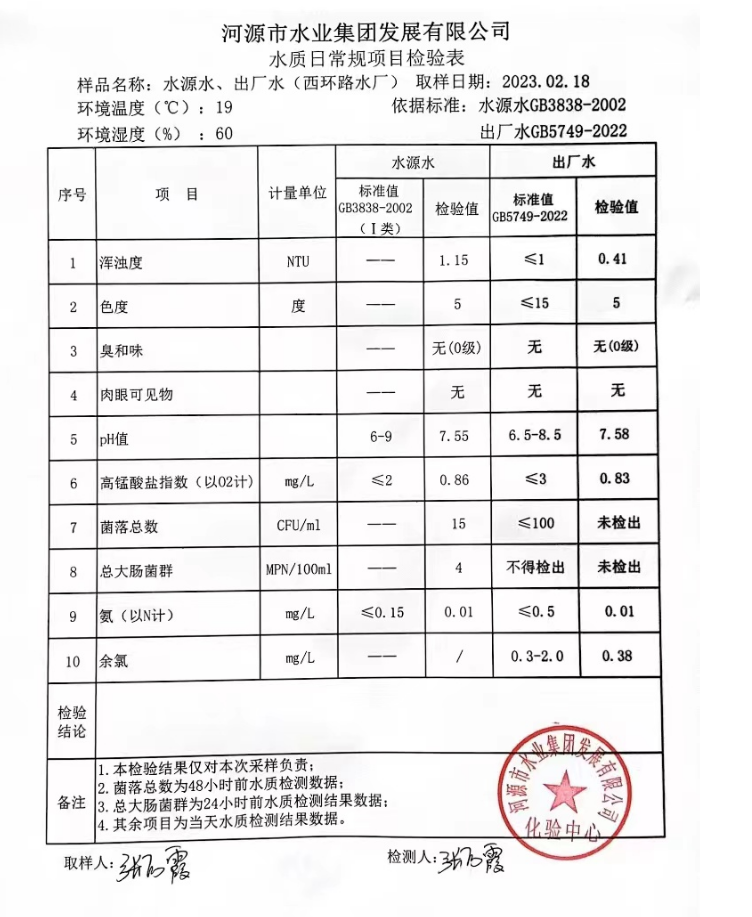 2023年2月18日水質(zhì)檢驗(yàn)報(bào)告