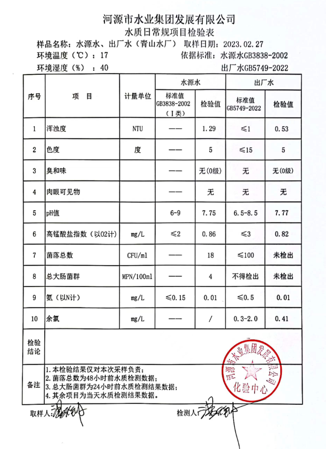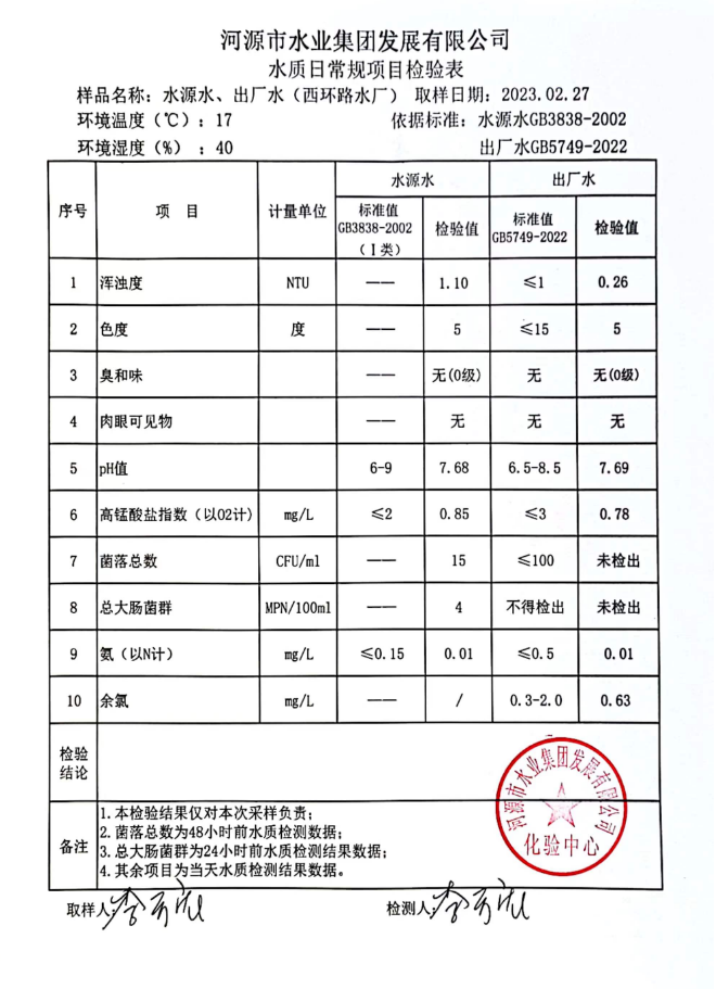 2023年2月27日水質檢驗報告