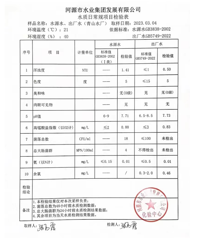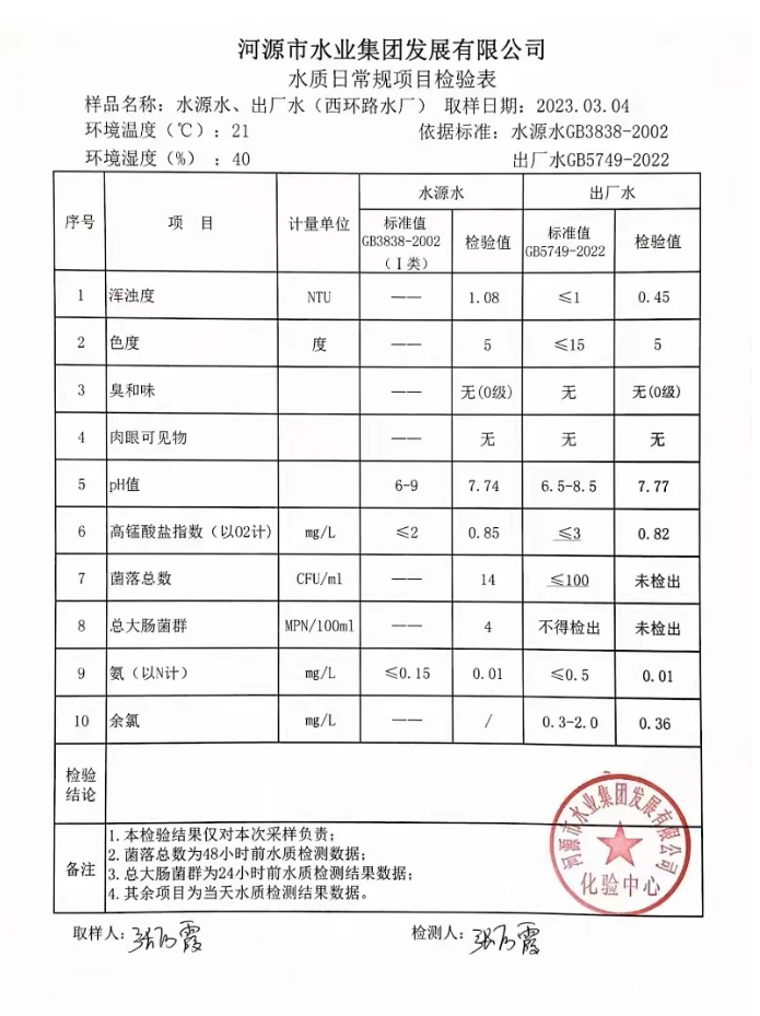 2023年3月4日水質檢驗報告
