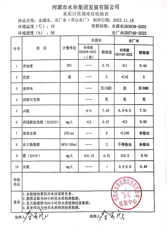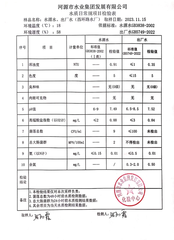 2023年11月15日水質(zhì)檢驗報告 ???