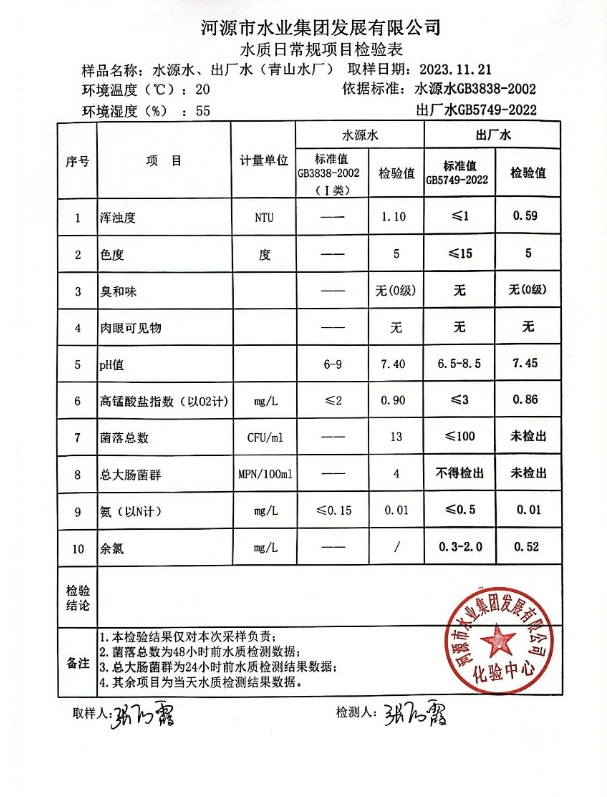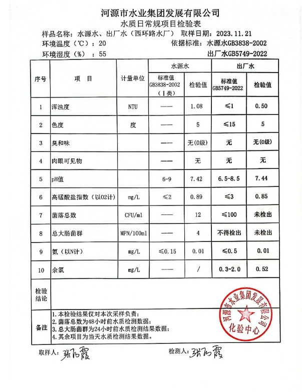 2023年11月21日水質(zhì)檢驗(yàn)報(bào)告 ???