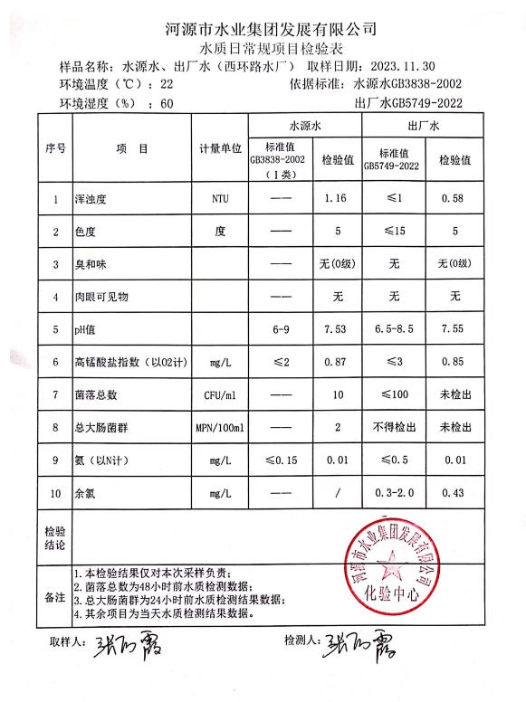2023年11月30日水質(zhì)檢驗(yàn)報(bào)告 ???