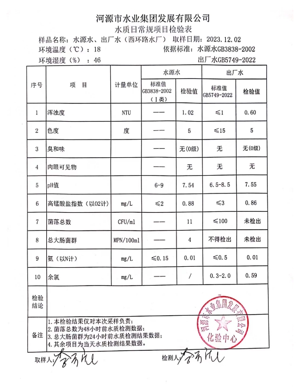 2023年12月2日水質(zhì)檢驗報告 ???