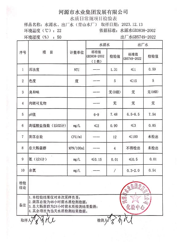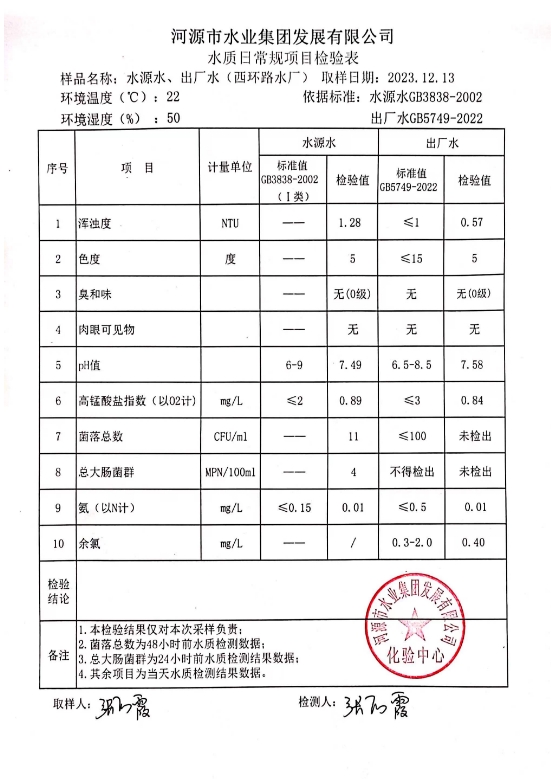 2023年12月13日水質(zhì)檢驗(yàn)報(bào)告 ???