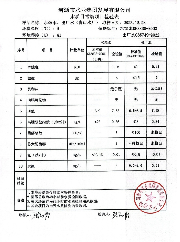 2023年12月24日水質(zhì)檢驗(yàn)報(bào)告